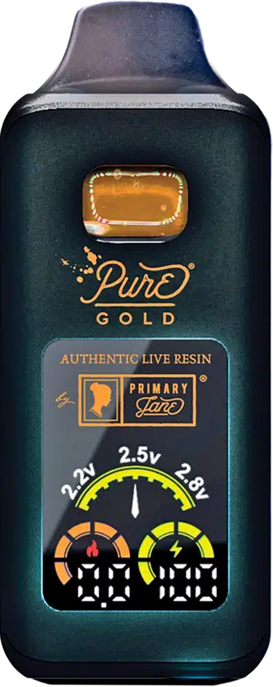 Our small batch Pure GOLD live resin pens redefine “premium” – read on to discover why. This true full spectrum live resin works with your body’s endocannabinoid system to promote euphoria, relaxation, better sleep, positive mood and better focus. Our plants are flash frozen almost immediately after harvest and then we use a cold extraction method to keep all of the original terpenes intact, creating a true-to-the-plant experience like no other. Full panel lab results combined with our post-less metal-free tanks, digital display, preheat button, and variable voltage controls make this a true top shelf experience.